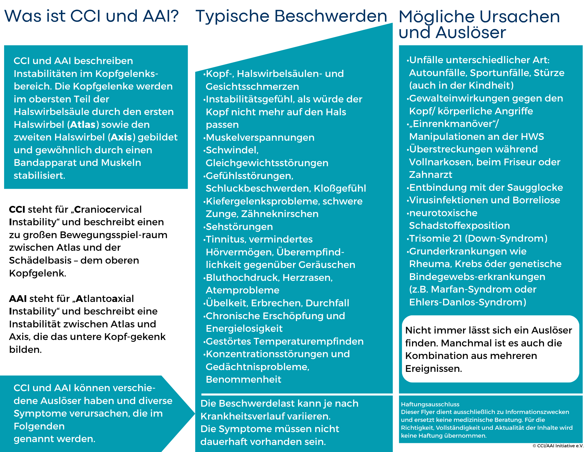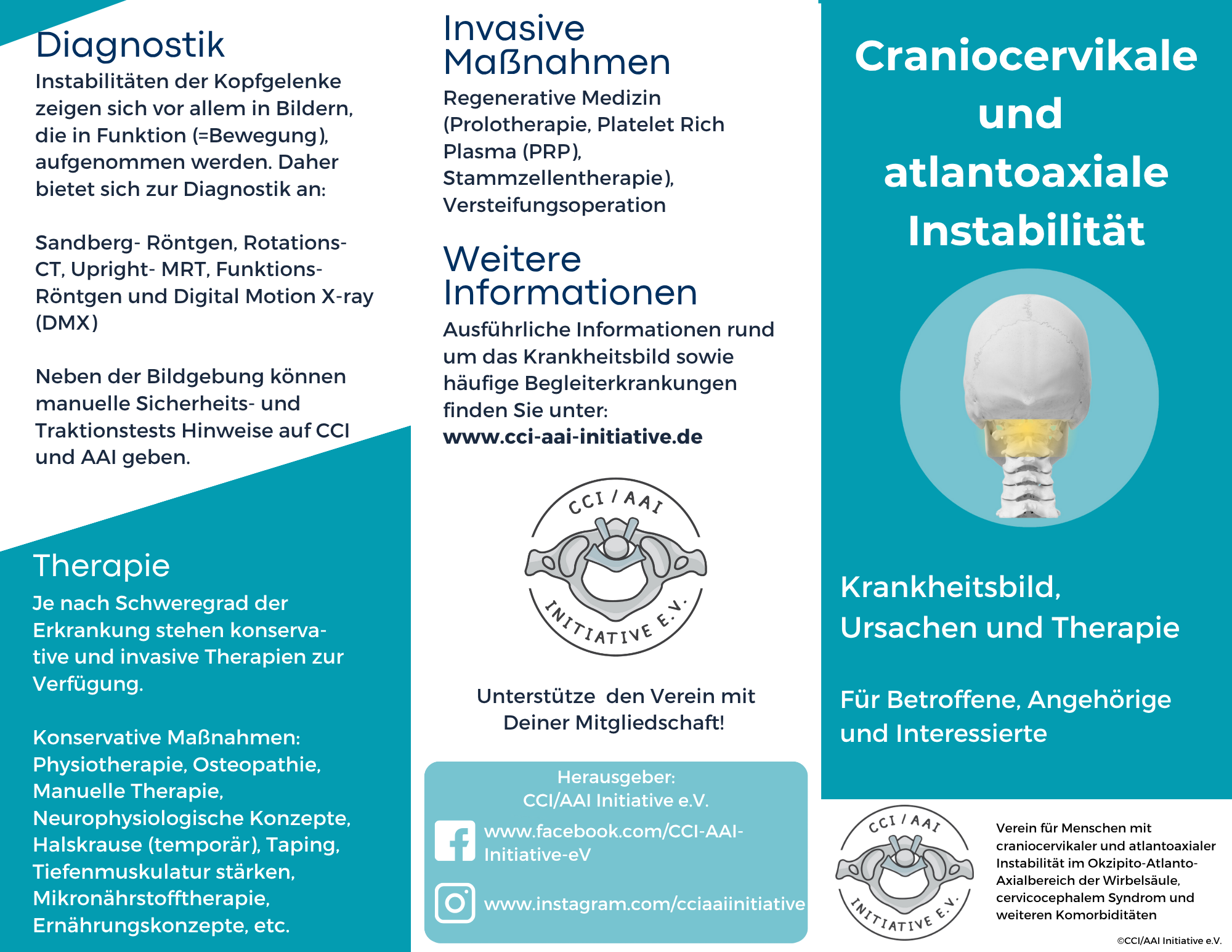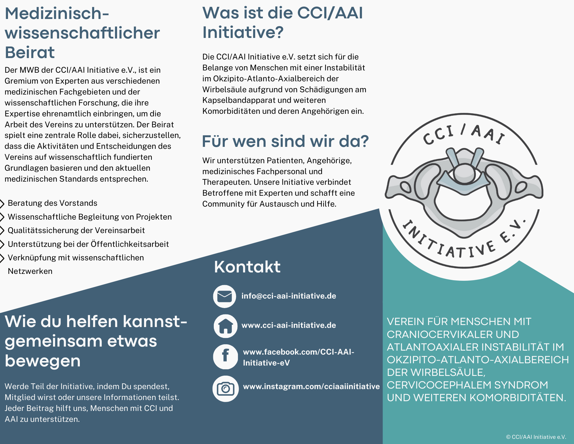 CCI/AAI Initiative e.V. - Verein für Menschen mit craniocervikaler und atlantoaxialer Instabilität im Okzipito-Atlanto-Axialbereich der Wirbelsäule, cervicocephalem Syndrom und weiteren Komorbiditäten.